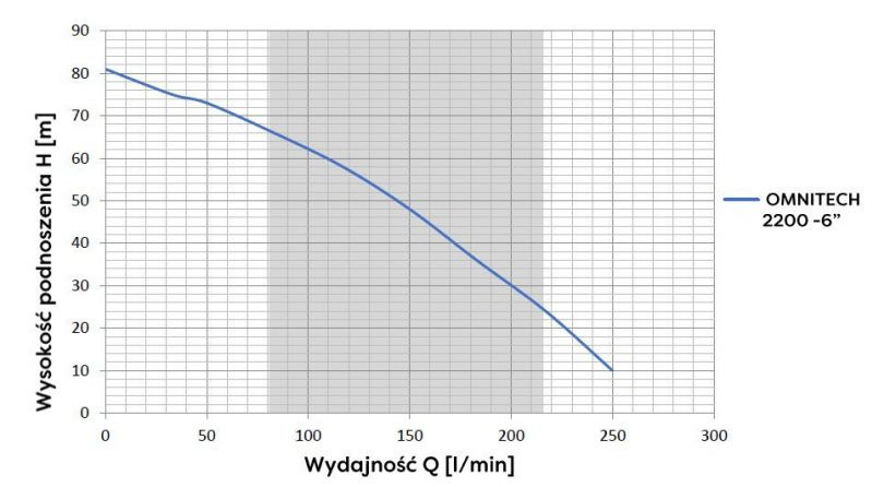 Pompy głębinowe OMNITECH 2200 6" o budowie monoblokowej, przeznaczone są do tłoczenia czystej, zimnej, słodkiej wody z odwiertów głębinowych oraz innych zbiorników.